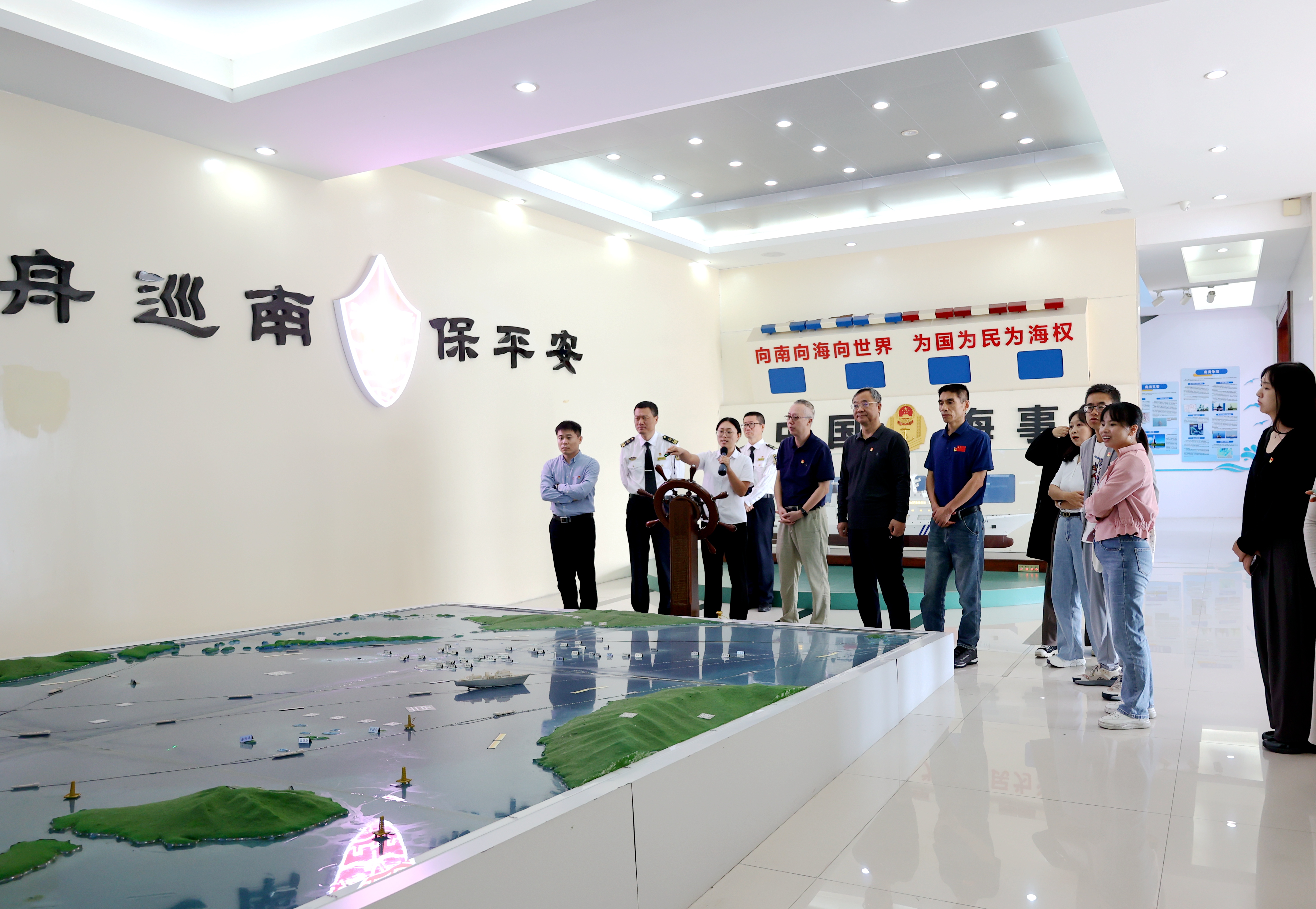 党员教师们首先来到位于南沙的南海海巡执法总队海巡基地。南海海巡执法总队海巡基地是广东省爱国主义教育基地,大家参观了南海沙盘、南海览要、“海盾”文化馆,深入了解了我国南海地理水文、我国海事执法的发展历程和现状,“舟巡南海,盾保平安”的价值理念和“向南向海向世界,为国为民为海权”的崇高职责,增强了对国家海洋权益的认识和保护意识。随后,在南海海巡执法总队领导的带领下,大家登上“海巡09”海事巡逻船,实地参观这艘中国海事执法旗舰,深切感受海事执法人员怀揣对海洋的无尽热爱,尽责尽力守护海洋航行安全的奋斗精神。“海巡09”是我国首艘万吨级海事巡逻船、全球首艘智能大型公务船,2021年交付列编。